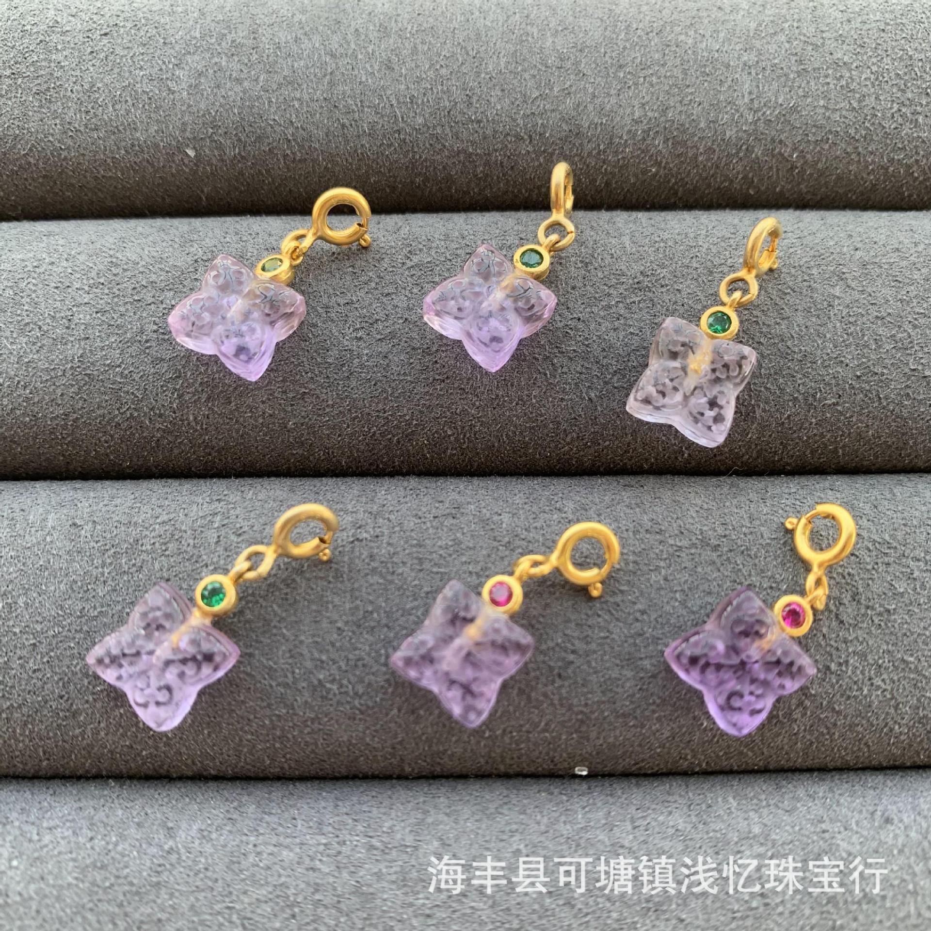 天然紫水晶部品彫刻四葉草四弁花s925銀は小さいチェーンのネックレスdiy部品をはめ込んでいます。