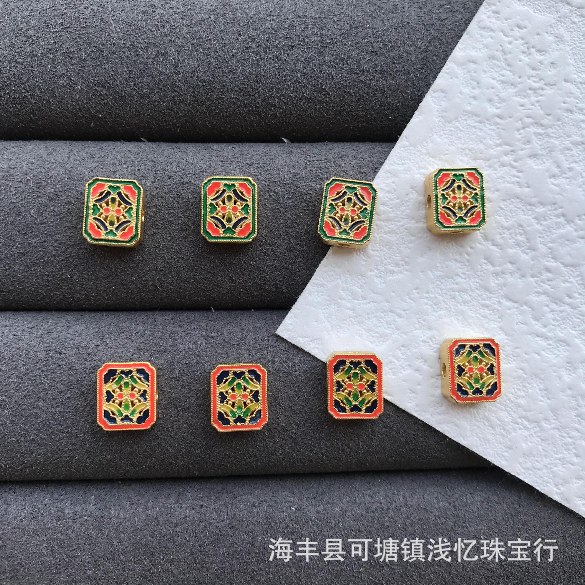 新品長方形s925銀焼藍滴油アクセサリー十字花形祥雲三方通孔ブレスレットネックレスdyアクセサリー