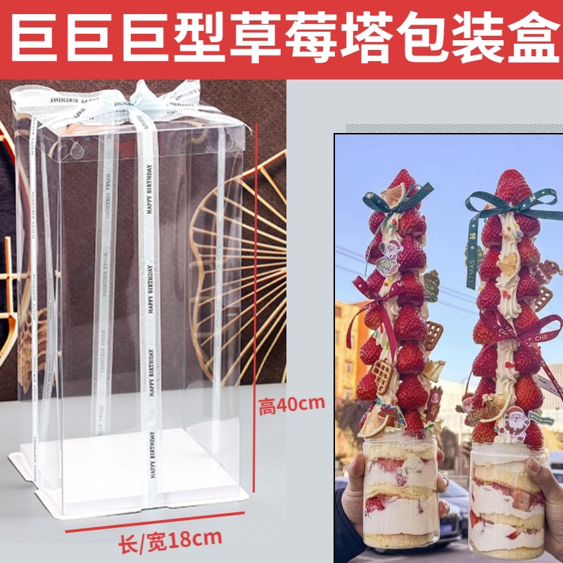 クリスマスネット赤巨大いちご塔包装箱透明誕生日ケーキ箱4インチ29高さ40高メーカー直販