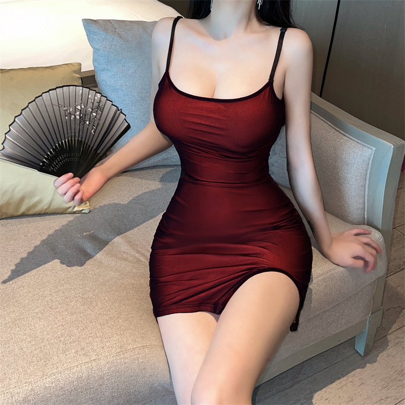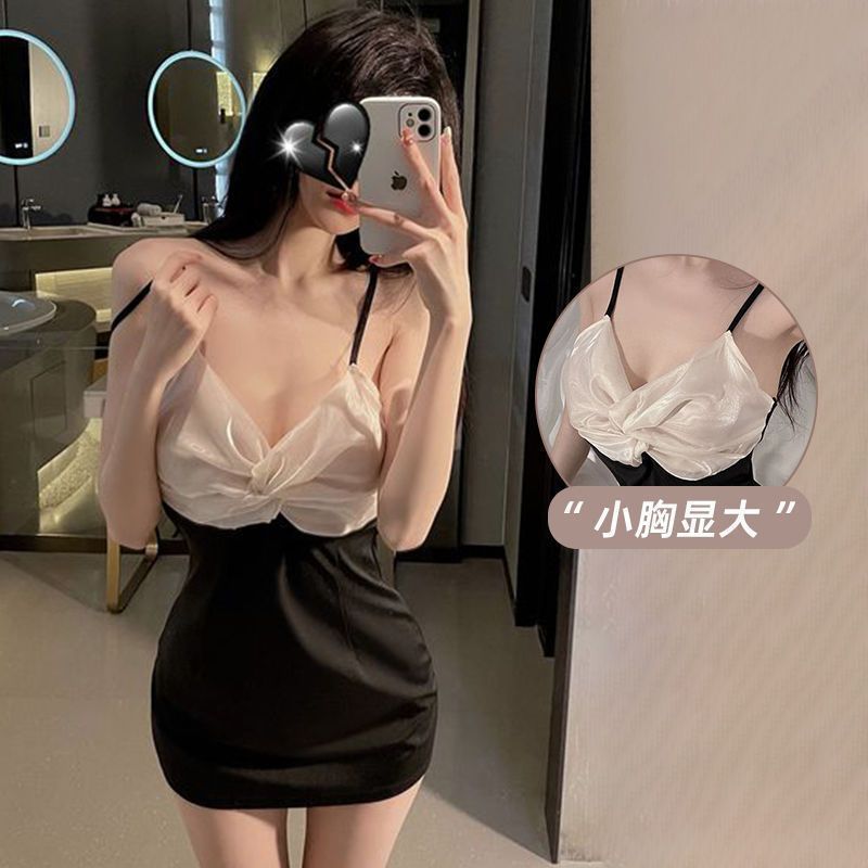 セクシーなセクシーなサスペンダーの寝ているスカートの女性の純欲の風は色にぶつかってパジャマの深いvの低い胸の誘惑の甘い辛いサスペンダーのスカートをつなぎます。