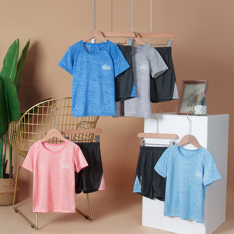 夏の子供の半袖速乾メッシュセット男の子のスポーツウェアの通気性のある半ズボンの子供服の卸売り