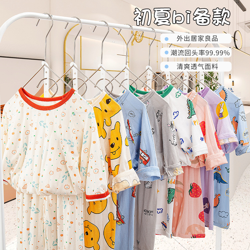 子供用パジャマセット夏男児空調服アイスランド綿女児中小童家庭服七分袖韓版子供服