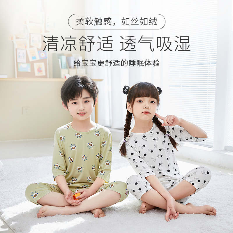 夏の子供のパジャマの薄いタイプのヤセルの男の子の7分の袖のスーツの男の子のエアコンの服の女の子の部屋の服のスーツ