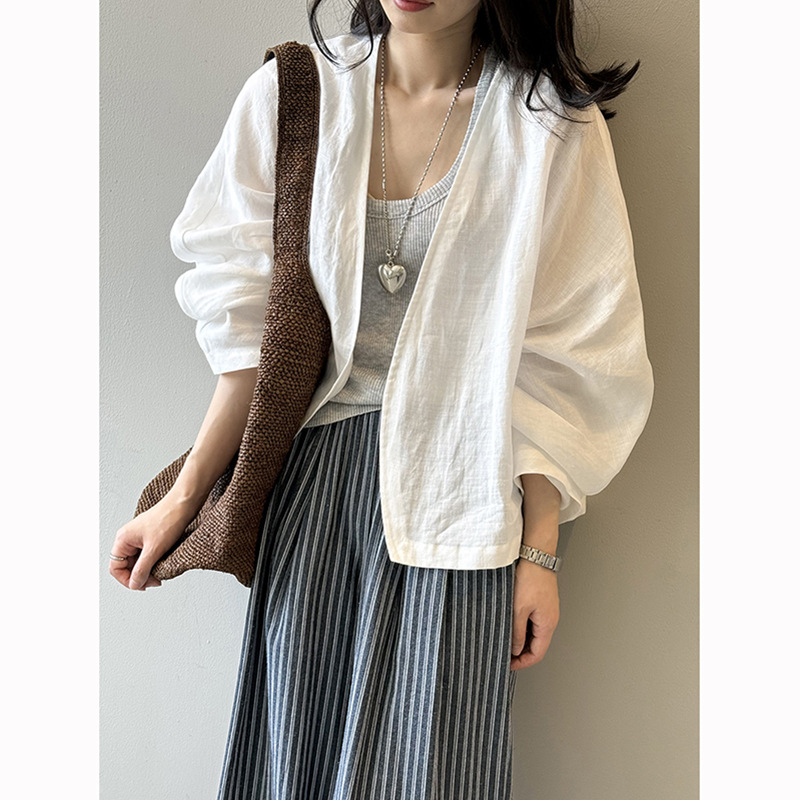 文学レトロラミー長袖カーディガンジャケット女性の夏のルーズ多用途日焼け止めシャツトップリネンショートジャケット