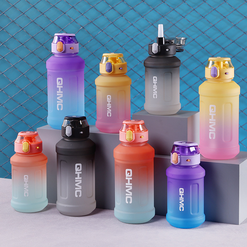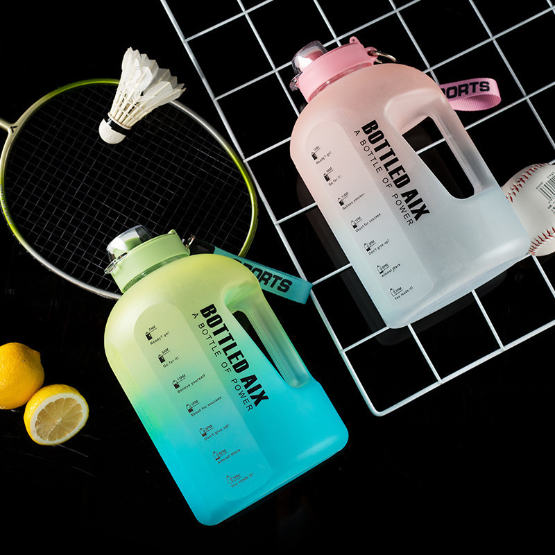 大容量運動水筒グラデーション色プラスチックコップ夏ネット赤同型屋外フィットネス2200mlトンバレル