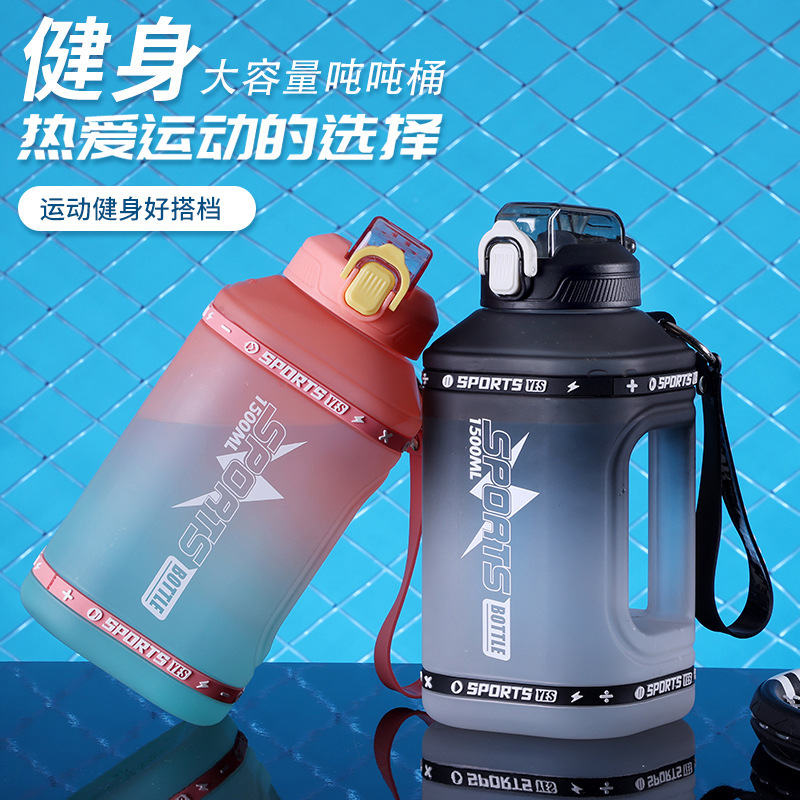 夏の大容量トンバレル運動水筒ストローコップ男女子学生携帯屋外フィットネス運動プラスチックコップ