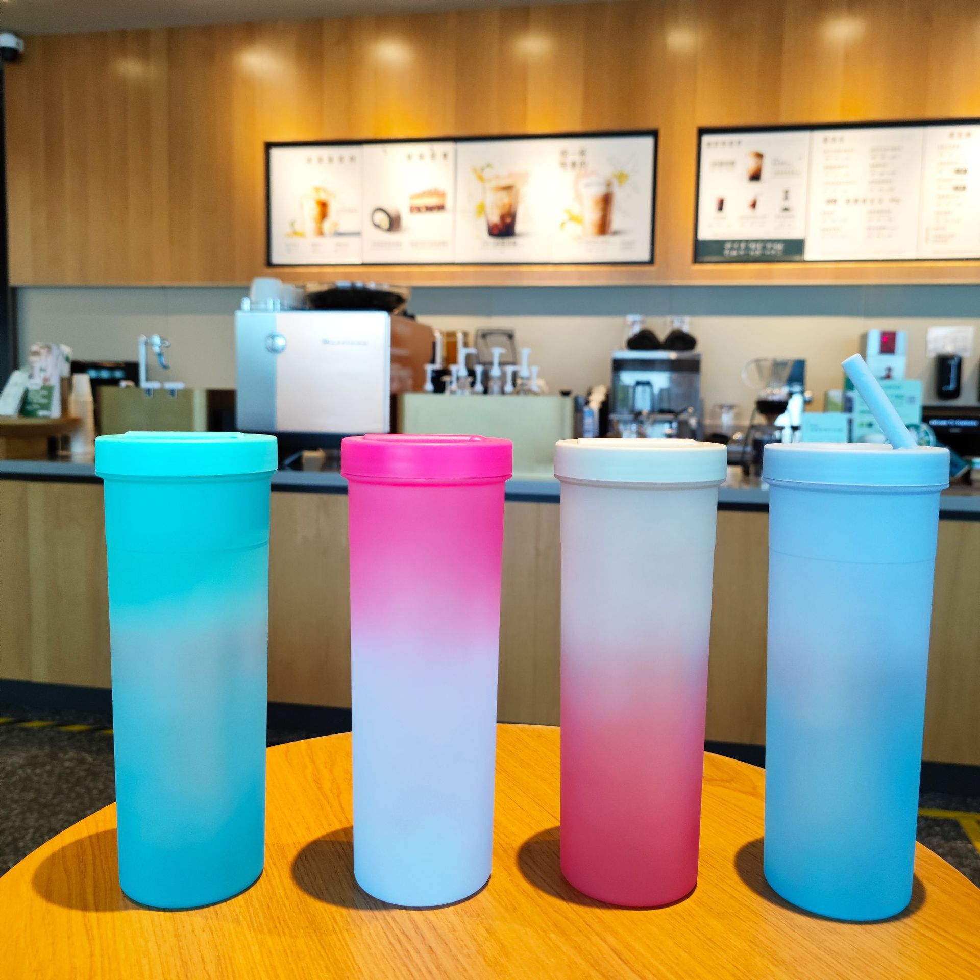 新商品グラデーション色つや消しプラスチック高颜値学生ジュースカップ700mlカップル花茶折り畳みストローカップ