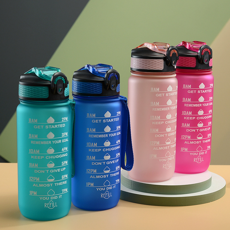 新しいグラデーション色のつや消しの宇宙カップのノズルの大容量の1000mlの携帯の縄の成人の屋外のスポーツの水筒