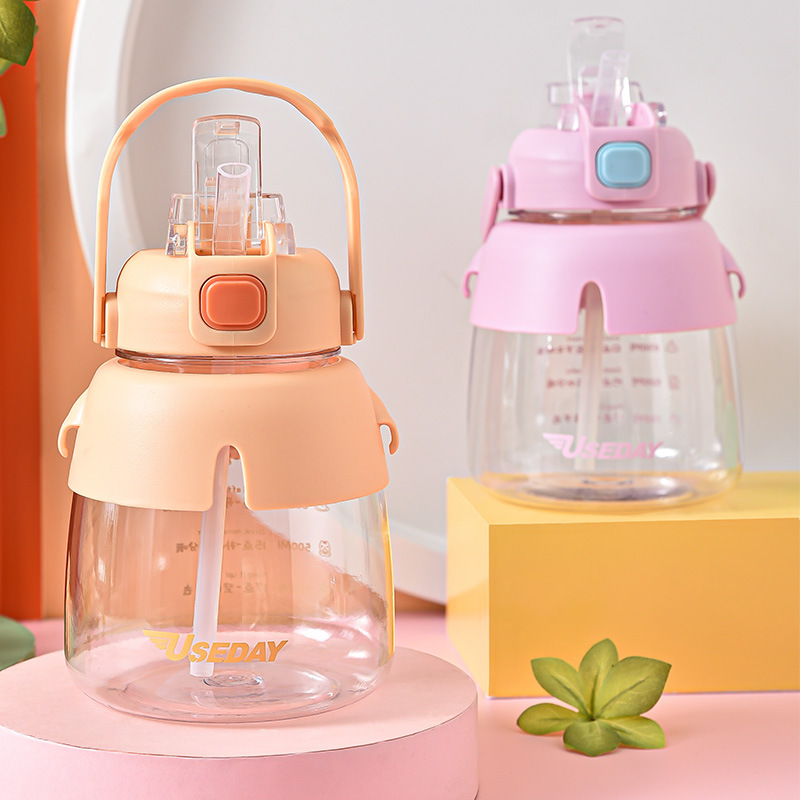 高颜値かわいいコップ大容量夏学生シンプル屋外ポータブル透明バウンスカバーストロープラスチックカップ