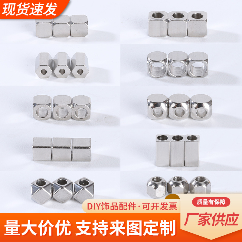 ステンレス製貫通穴ビーズ、四角倒しビーズ、長方形ビーズ、角切りビーズ、無穴ビーズ、多面菱形ビーズ、六角ビーズ