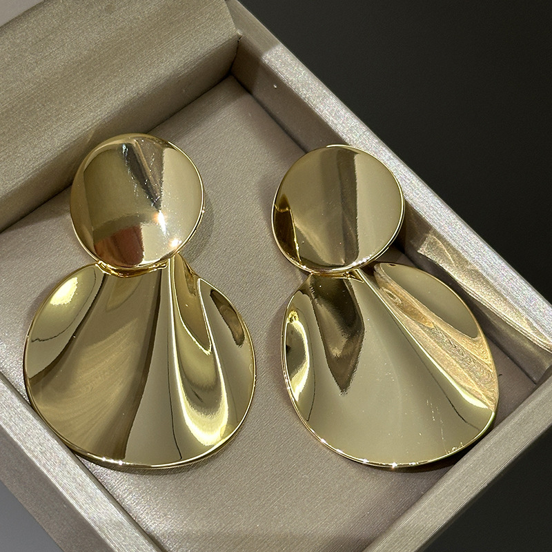 欧米の誇張したレトロな耳飾りの不規則な金色の大きい光沢の面の凹凸の異形の幾何学の円形の大衆の設計のイヤリング