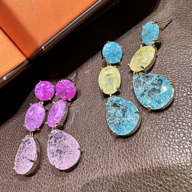 豪華で独特な色の宝は色の大きいドリルのイヤリングにぶつかります。