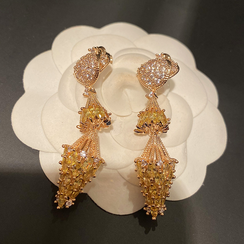 豪華なダイヤモンドは超閃黄水晶のひし形の大黄ドリルのピアスの気質の大きいジルコンの誇張する銀針のジルコンのイヤリングの女性です。