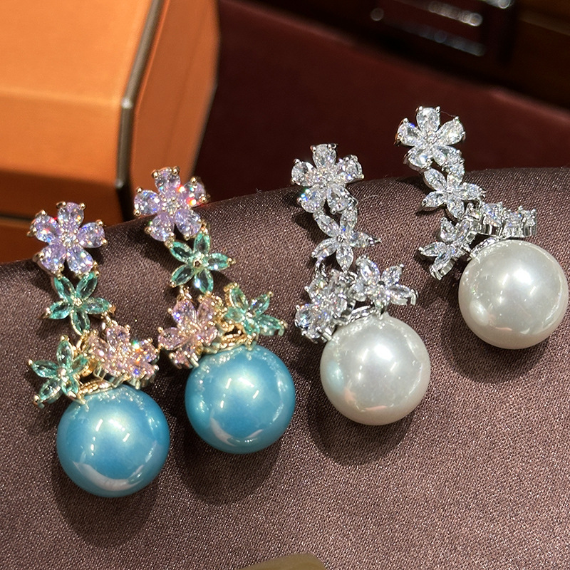 フランス式宮廷の小花の花に真珠のイヤリングを入れて、華麗な宝石級の欧米の重工の花蕊の気質に満ちています。