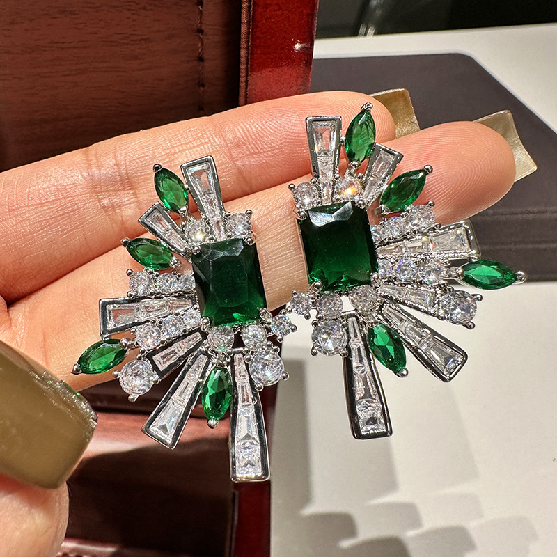 バロック宮廷レトロなエメラルド花火のイヤリングの豪華なドレスの雰囲気は緑のダイヤモンドのジルコンの豪華さをはめ込んでいます。
