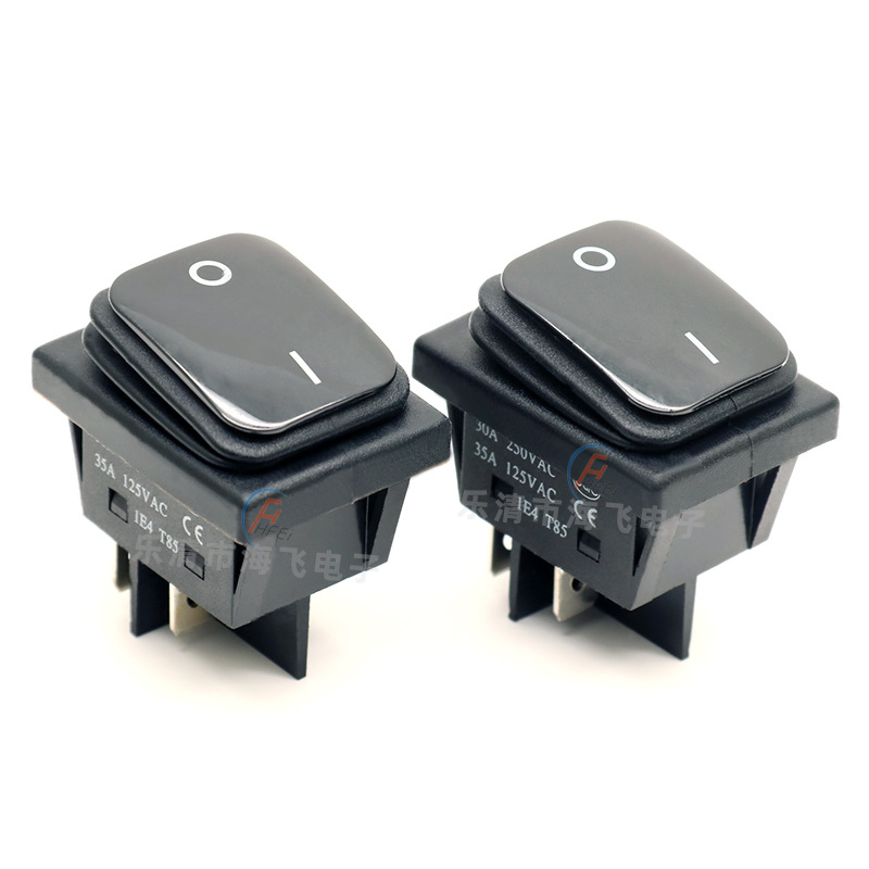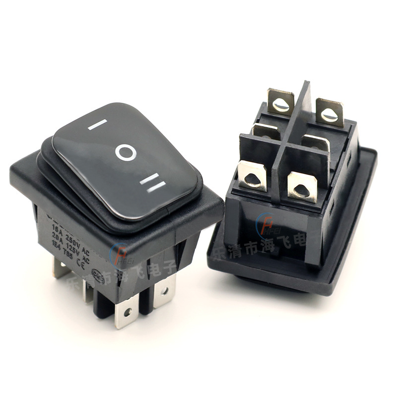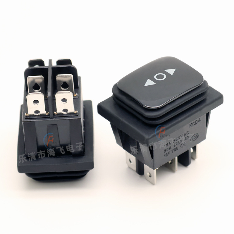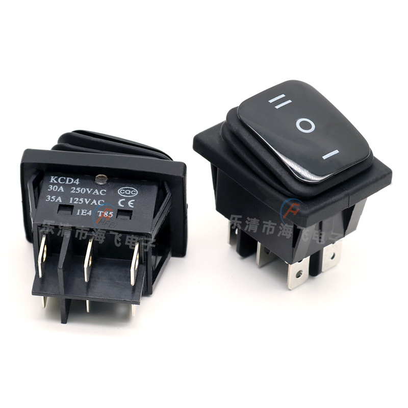 大電流30a大電力KCD4-201三段六脚銅脚無灯船型スイッチ全黒電源スイッチ