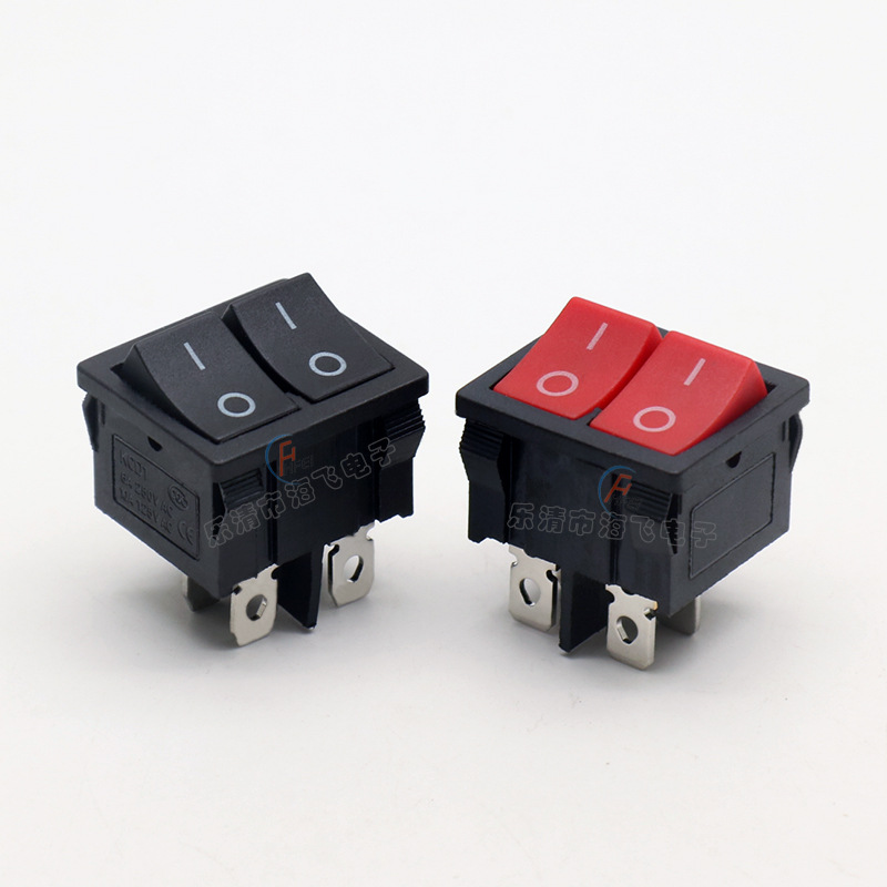 船型スイッチKCD1-201黒赤双子四脚二段ダブル電源スイッチ
