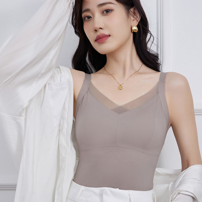 24 ヌード V ネック保湿と胸の栄養補給シームレスベストプッシュアップ一体型固定カップノンワイヤーブラジャーのようなレースの美しい背中