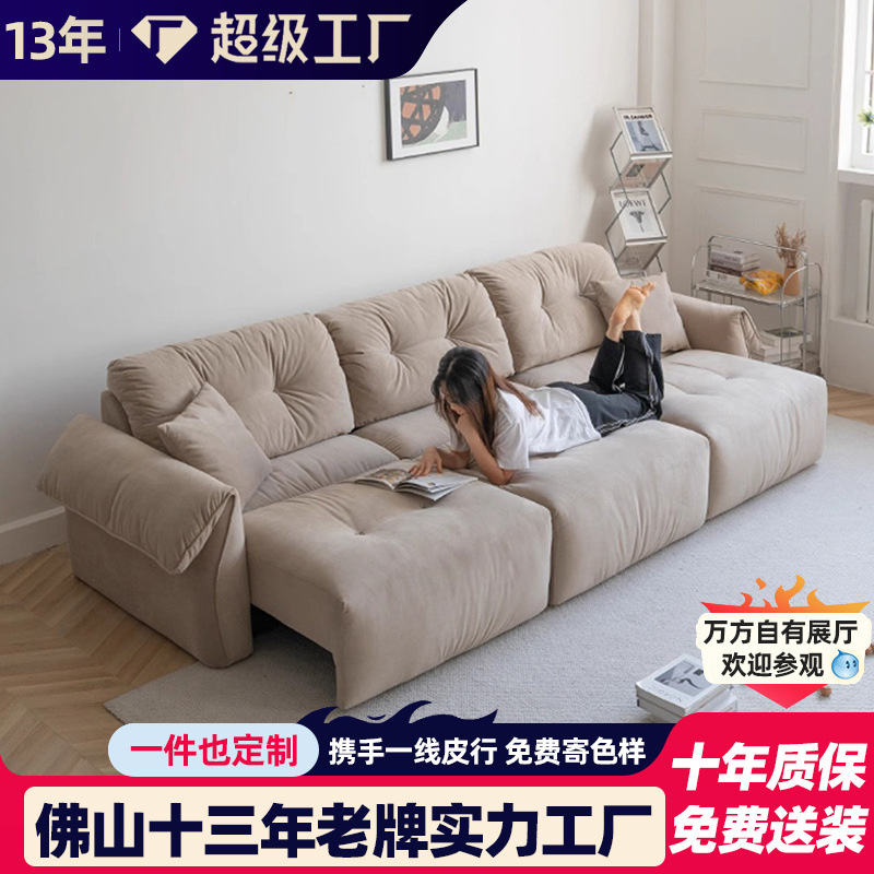 電動雲ソファー猫掴み布クリーム風現代客間高背もたれ大座り深機能伸縮可能ソファー