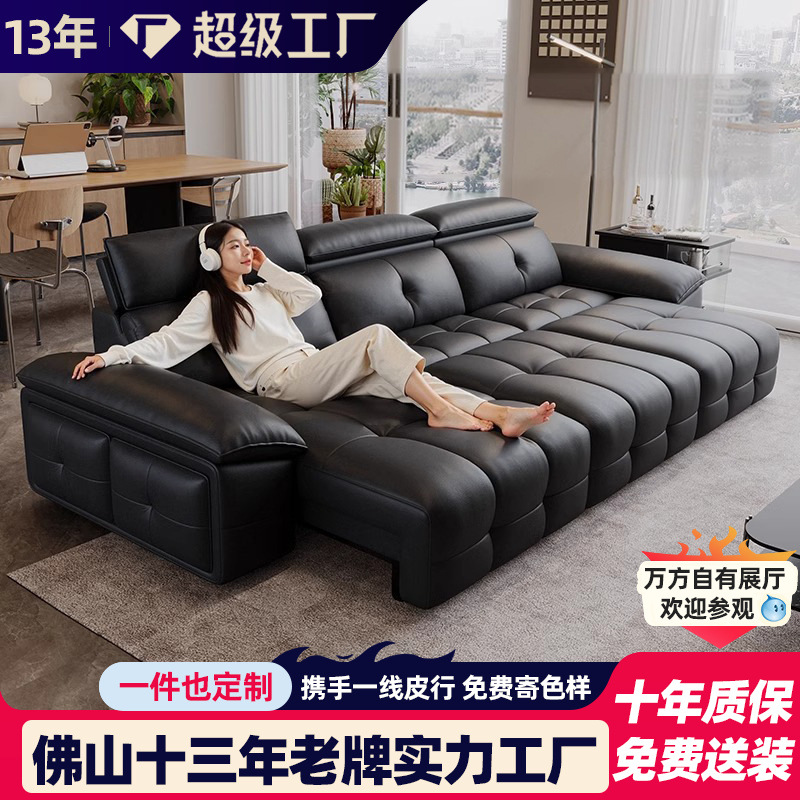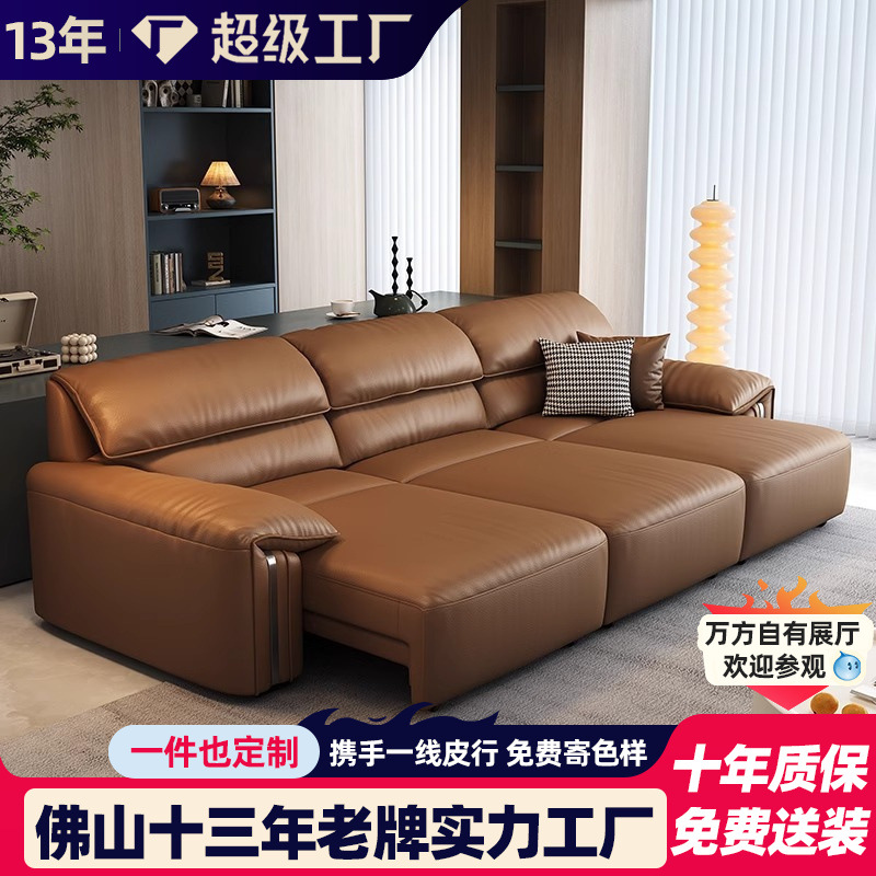イタリア式の極めてシンプルな頭層牛革客間の小戸型直排皮芸電動多機能伸縮ソファー高級感
