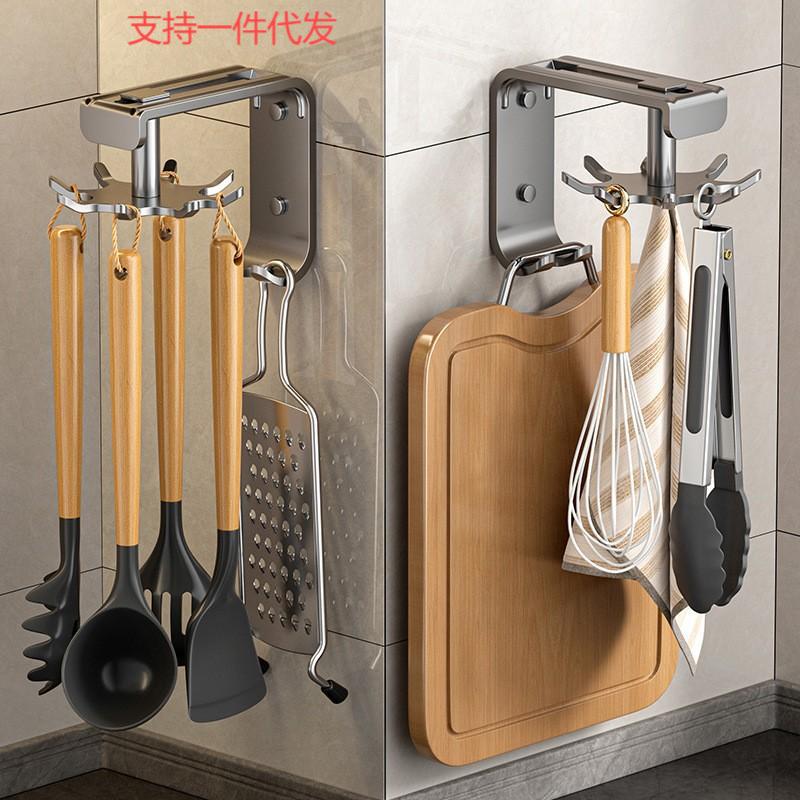 キッチン回転フック、穴あけ不要、壁掛けコーナー多機能収納ラック、スプーンとシャベルのハンガー