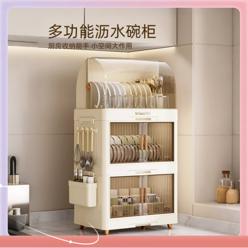 ✅ 蓋付き家庭用哺乳瓶排水管、プラスチック食器棚、スキンケア製品、多層収納キャビネット、化粧品、食器、皿、食器