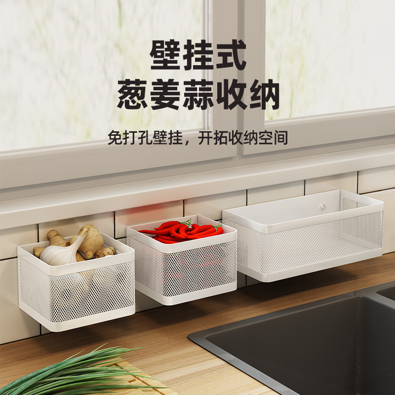 キッチン生姜、ニンニク、玉ねぎ収納ラック、パンチングなし、生姜、ニンニク収納ボックス、壁掛け果物と野菜の収納バスケット、スパイスラック