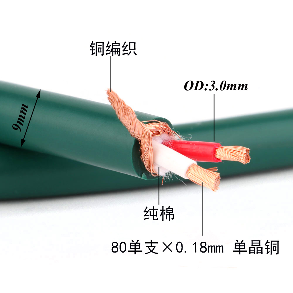 アメリカmvs魔吟赤色2芯信号線マイク線吉其線平衡線一分二音周波線