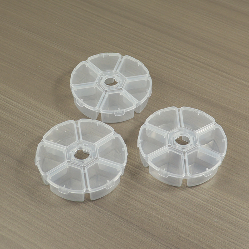 各コンパートメントに蓋が開くことができる丸型6コンパートメント収納ボックス、ジュエリーを収納できるポータブルボックス、美術学生用のパッケージングボックス、ペイントボックス