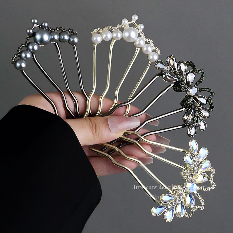 女性用高級パールU字型ヘアピン、新しい中国風ヘアピン、後頭部ヘアピン、2025年新作ヘアピン、ヘッドドレス