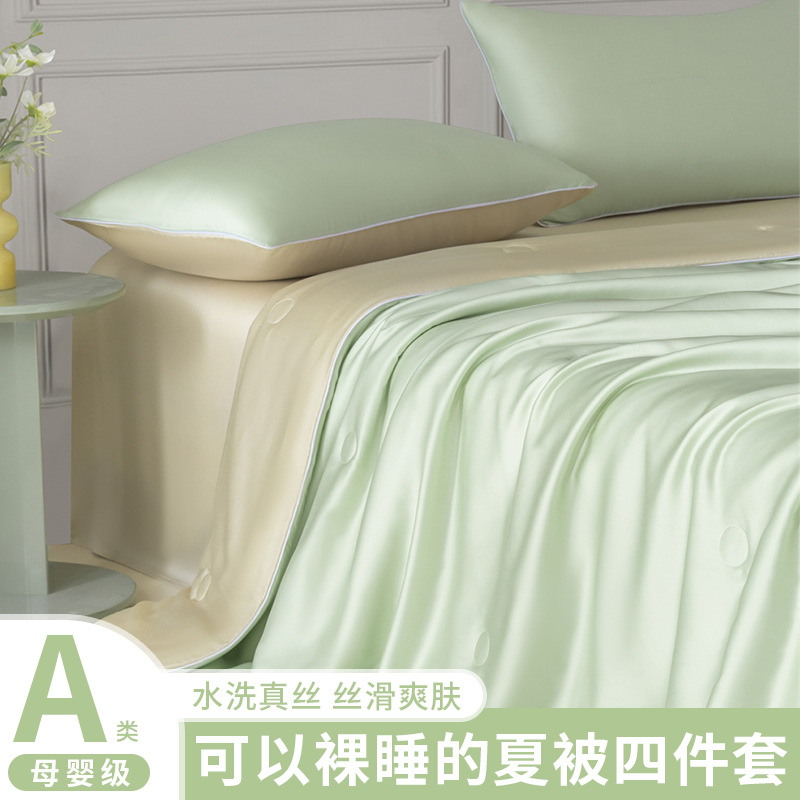 夏アイスシルクエアコンキルトクールサマーキルト2025新機械洗える薄いキルトシングルとダブルサマーキルト4点セット