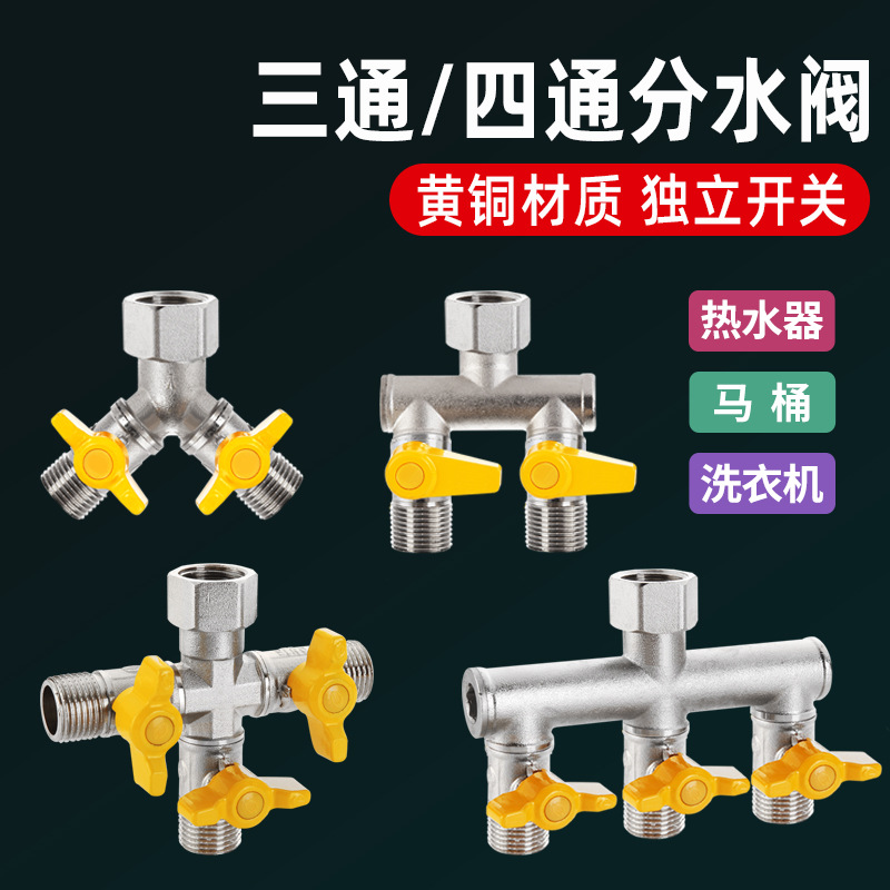 給湯器蛇口出水口一分二外付け三方分水弁スイッチ付き多頭角弁一進