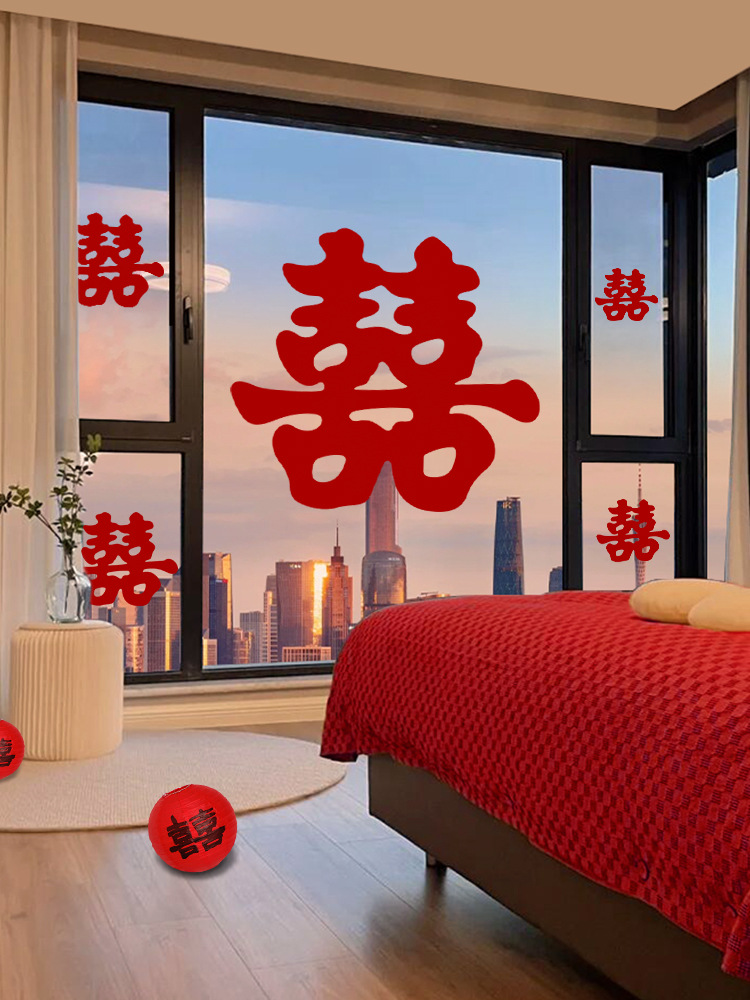 新居専用の結婚配置の字は窓の喜字を貼って寝室のドアを貼ります。
