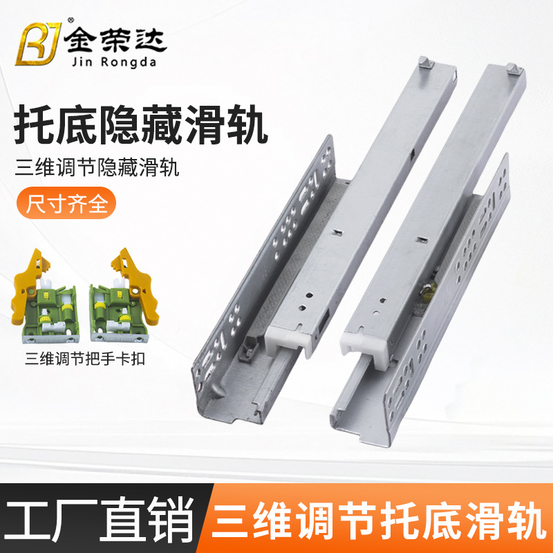 ハンドル付き3セクションボトムスライドレール、3D厚みのあるボトムバッファーリバウンド、隠しボトムレール、ダンピング引き出しスライドレール