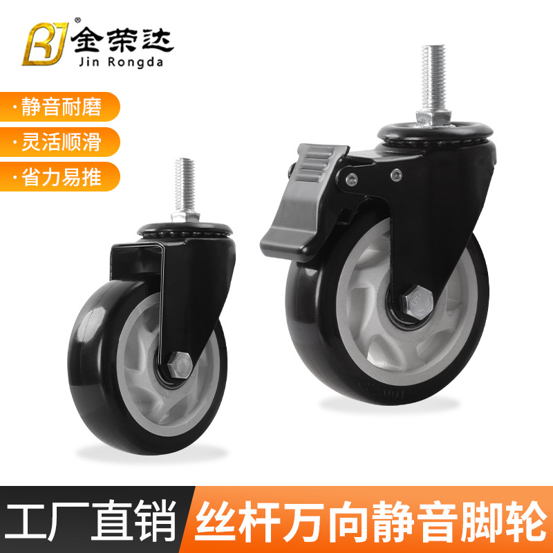 ユニバーサルホイール 1 インチ 1.5inch 2inch タイヤネジロッドブレーキ付きユニバーサルホイール工業用 PU ポリウレタン滑り止めユニバーサルホイール
