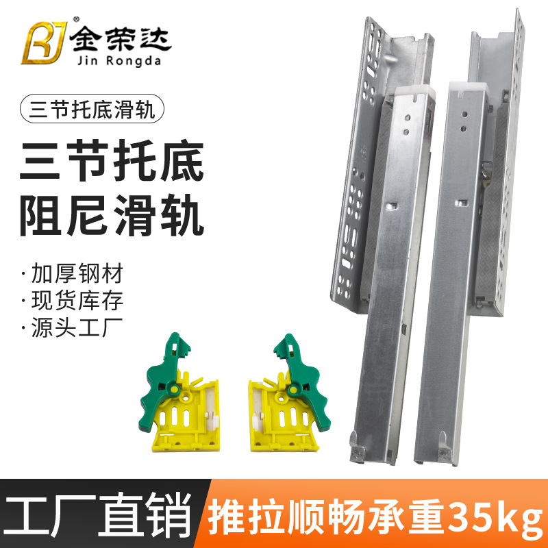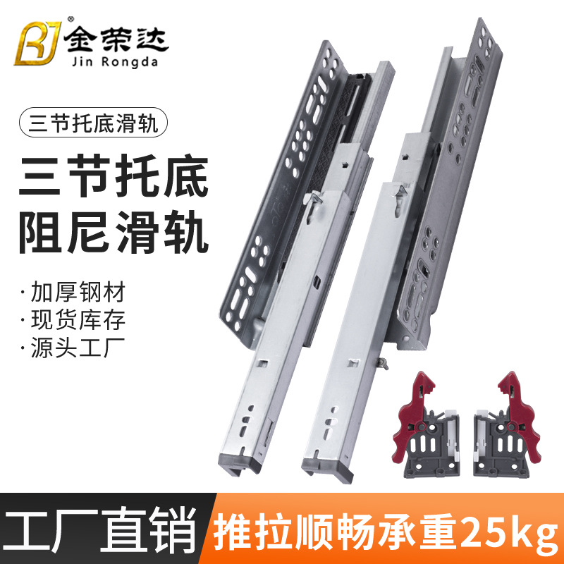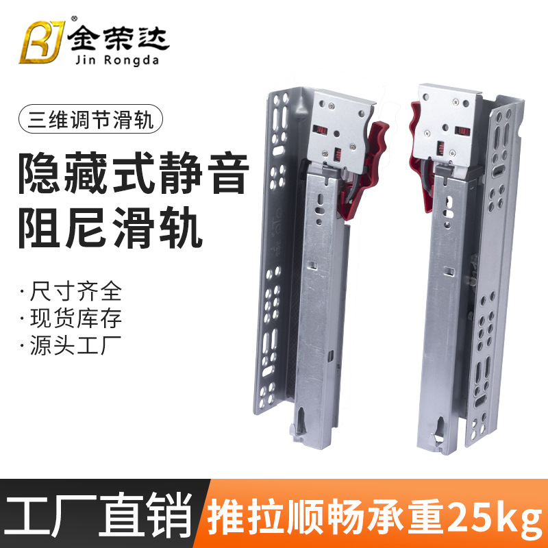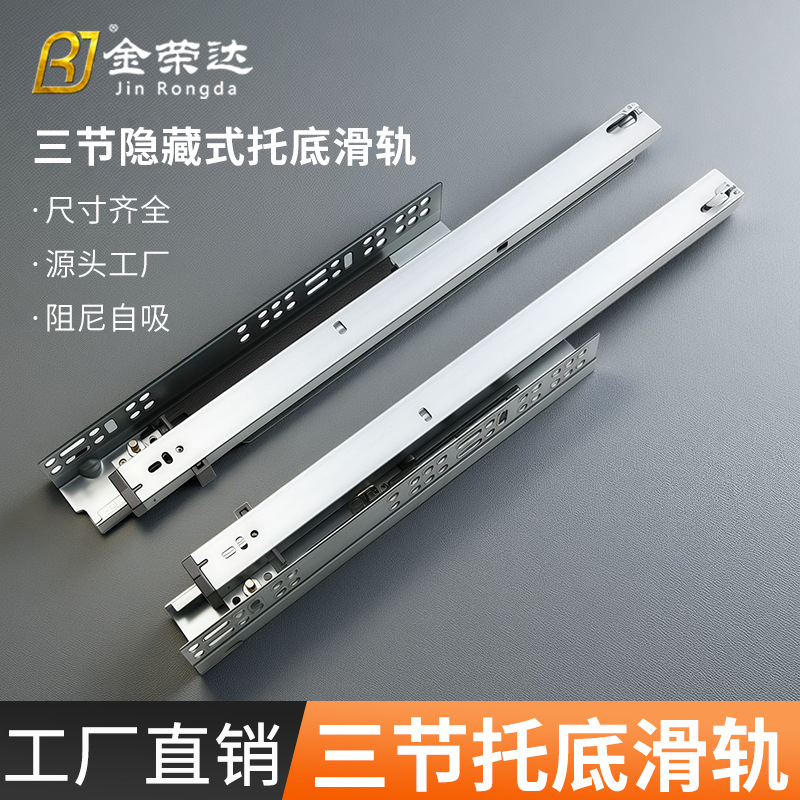 Jinrongda 3 セクション隠しレール緩衝引き出しスライドキャビネット耐荷重サイレントプレスリバウンドボトムレール