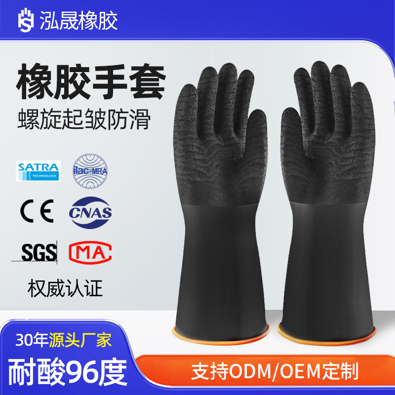 カスタム工場製スパイラル柄ゴム手袋、滑り止め、耐腐食、耐酸アルカリ、工業用、耐穿刺、延長型ゴム手袋