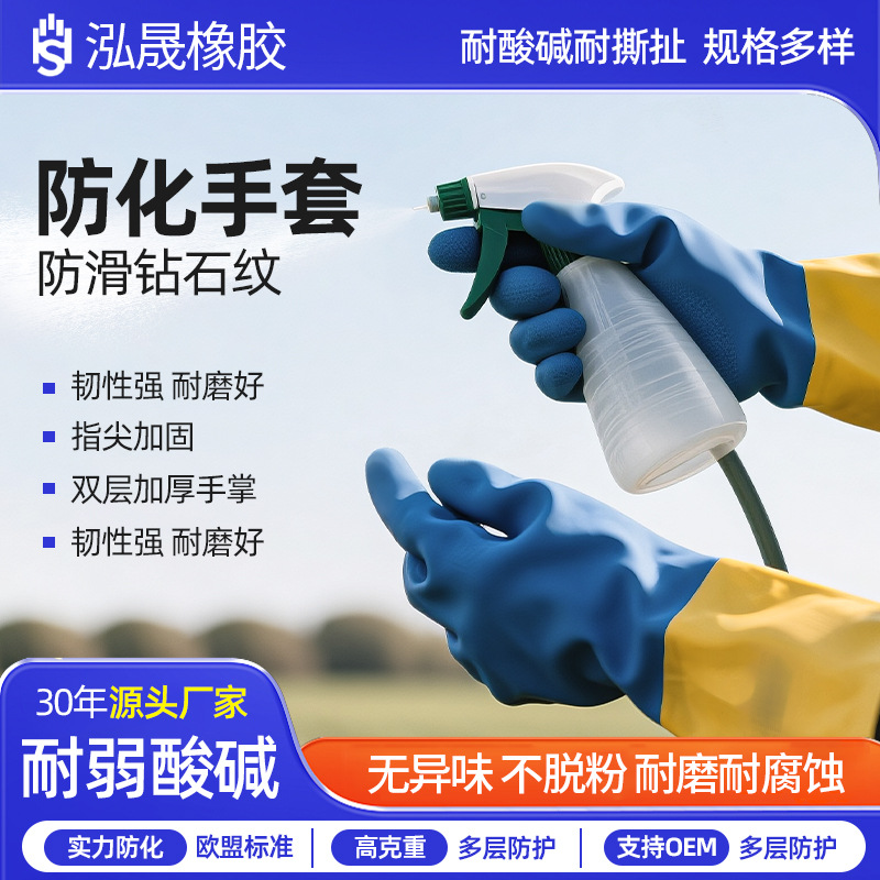 工場卸売 清潔ラテックス手袋 労働保護 シワ加工 滑り止め 耐摩耗性 耐酸性 耐アルカリ性 防腐性 化学工業用ゴム手袋
