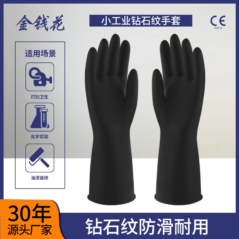労働保護卸売 ダイヤモンド柄 耐酸アルカリ性 滑り止め保護 厚手ラテックス手袋 工業用耐薬品性 耐腐食性 実験室用