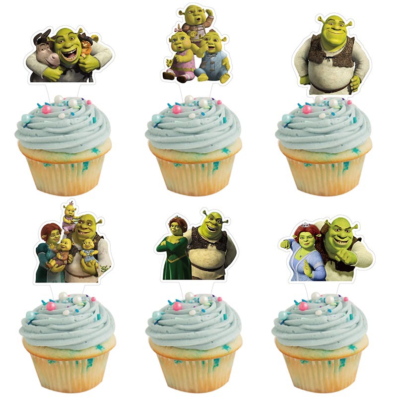 Shrekの誕生日の挿し札の漫画はケーキを並べます。