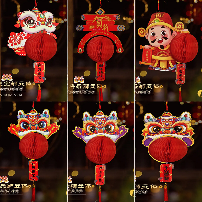 2025年新年装飾両面カラープリント立体掛けカード旧正月元旦年物提灯ストラップ店配置用品