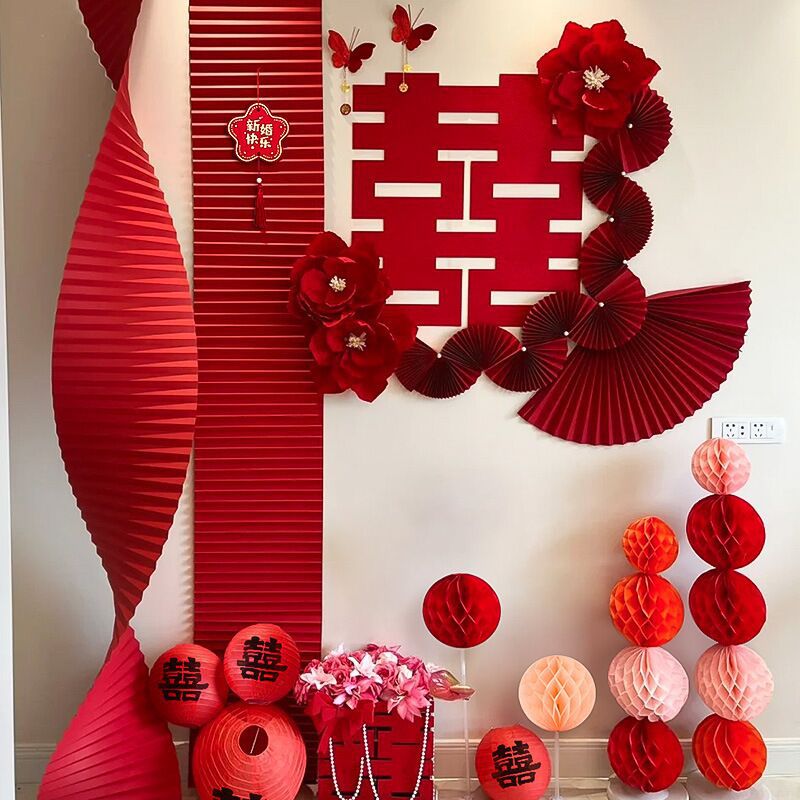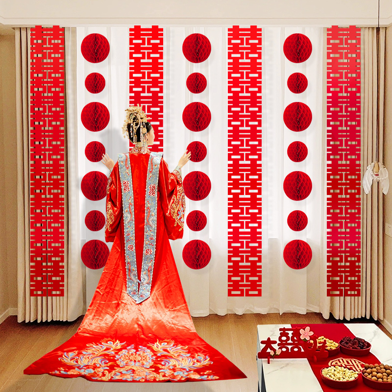 結婚立体喜字ペンダントセット結婚部屋客間寿字廊下屋根天井花引き結婚式