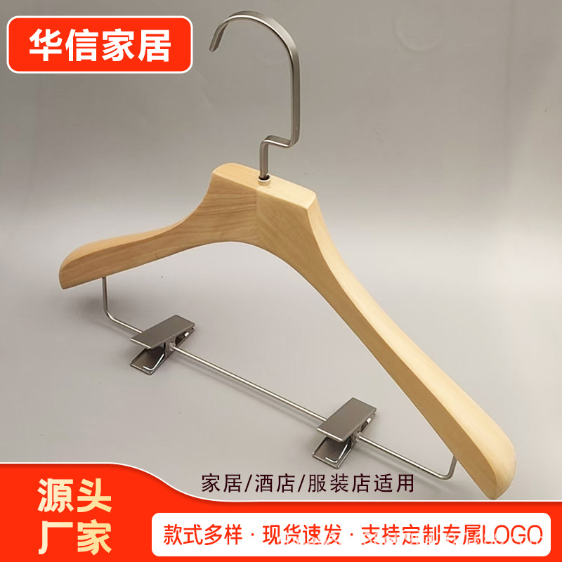衣料品店婦人服ハンガー、無垢材カラー、クリップ付き衣類ハンガー、木製衣類ハンガー、つなぎ服クリップ、無垢材収納、軽奢風