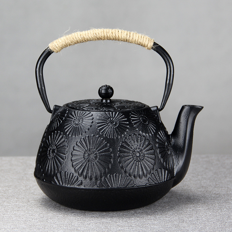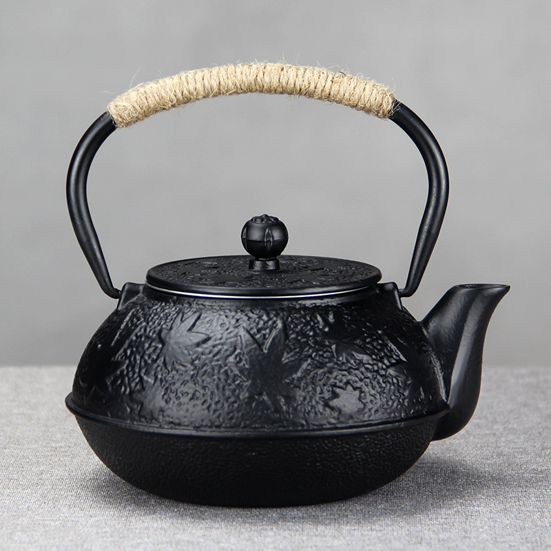 600mlもみじ黒和风煮水淹れ茶手作り鋳鉄ポットティーポット鉄ティーポット茶室置物アクセサリー