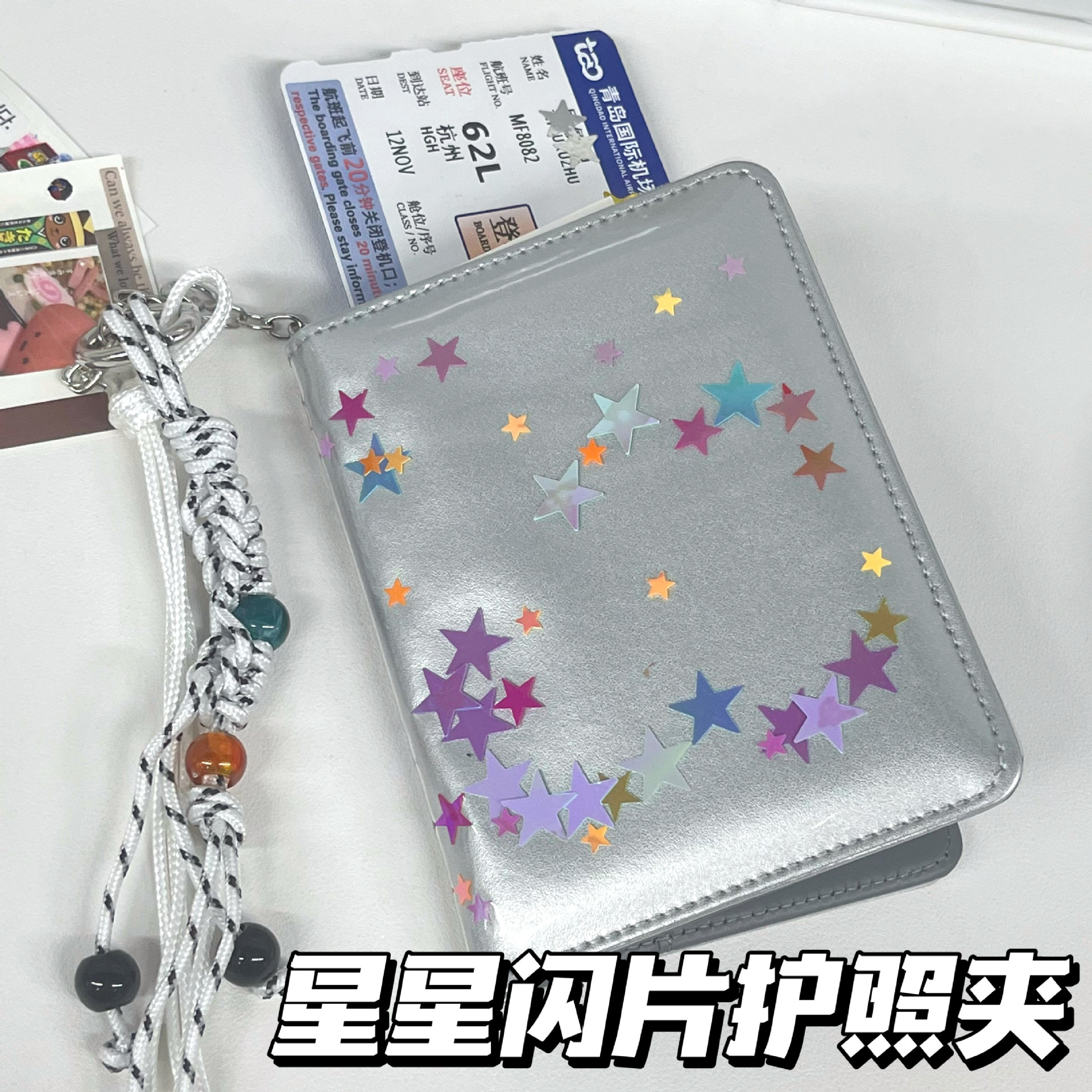 シルバースターグリッターパスポートホルダーイン高価値多機能トラベルカードホルダー海外航空券書類収納バッグ