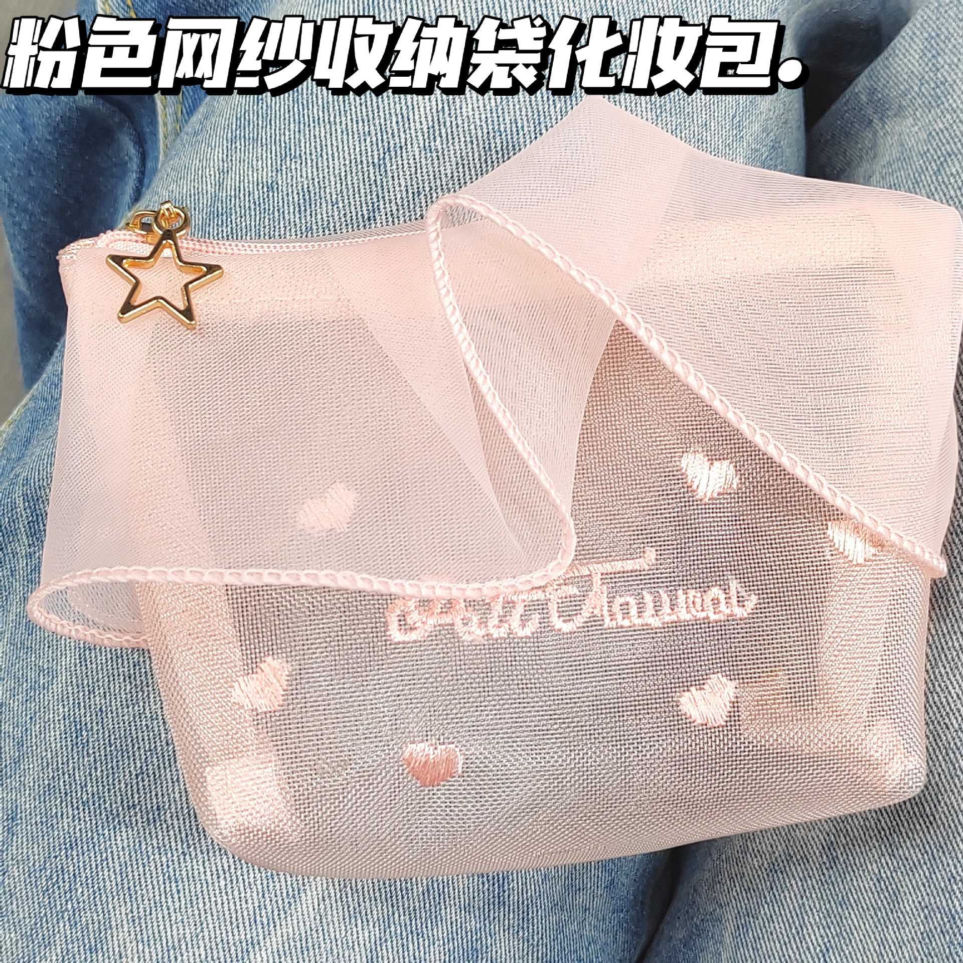 女の子用収納袋、メッシュ化粧品袋、愛の刺繍入り、ポータブル、小さくてかわいいティッシュバッグ、カードバッグ、メイクアップ収納袋
