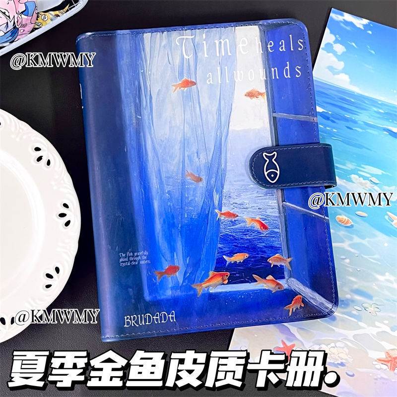 A5 ダークブルー金魚カードブックニッチインスタイルレザー磁気学生スター愛好家 3inch 小さなカード収納ディスプレイブック