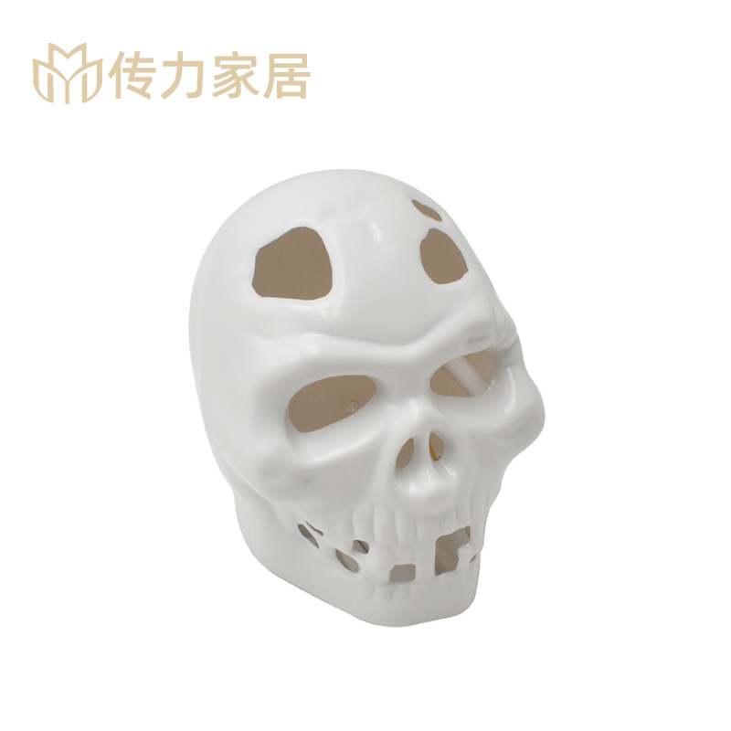 ハロウィーンのテーマのスカルのろうそくの台はシーンを飾って道具を配置して装飾品を飾って置物を飾ります。