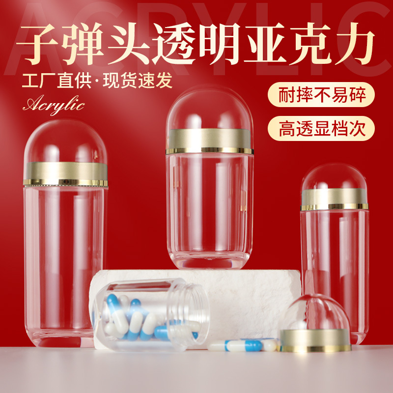 透明アクリル瓶圧片糖果カプセル熊胆粉粉剤小瓶保健品瓶紅金内胆小薬瓶