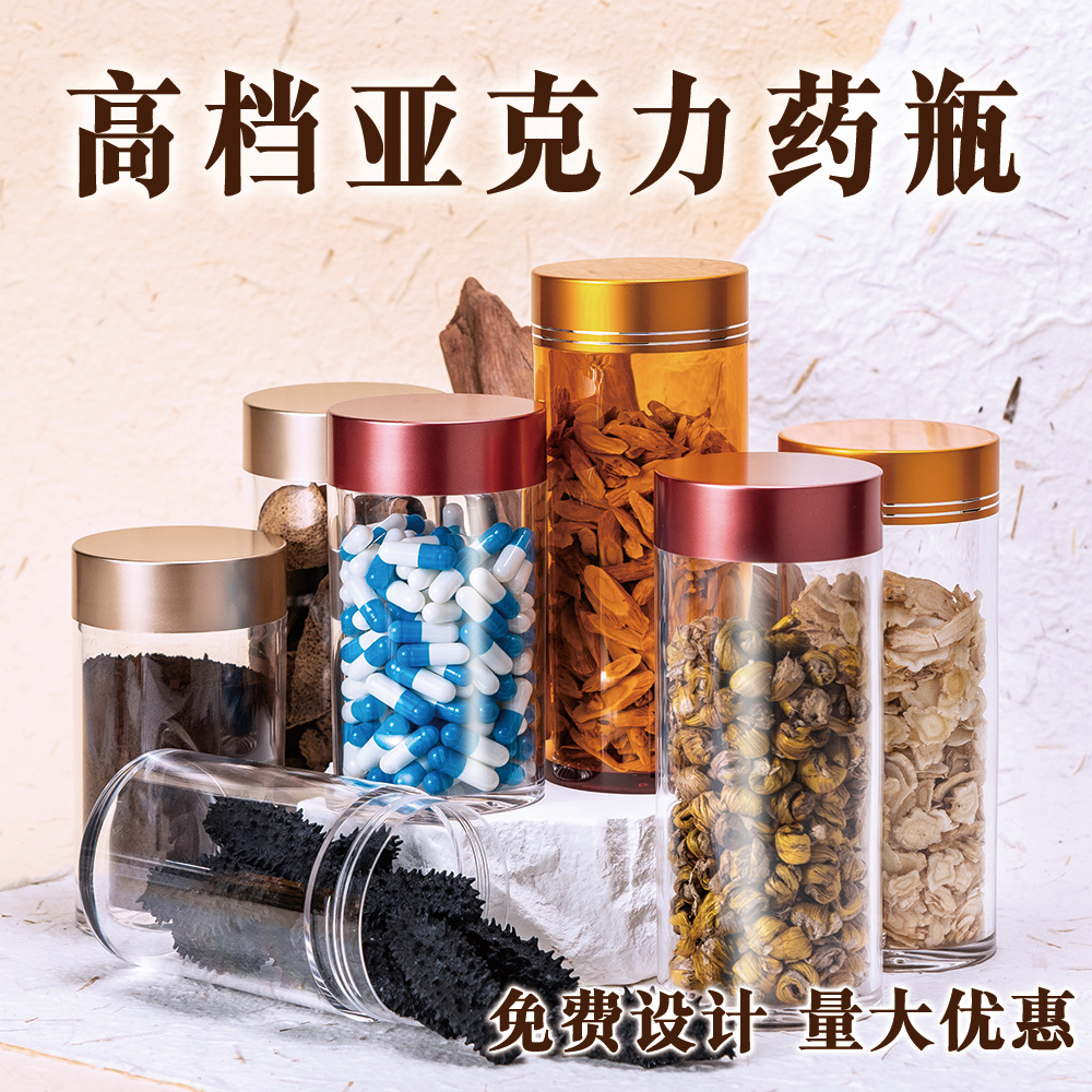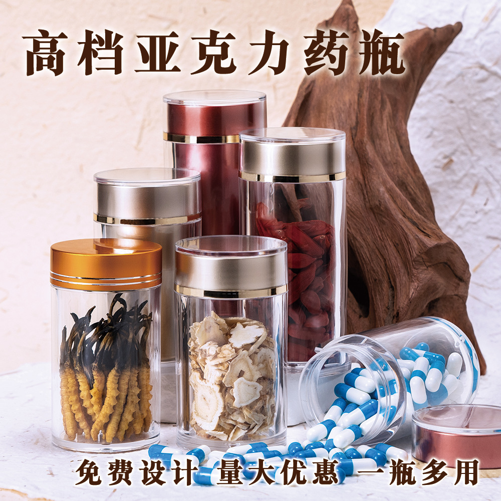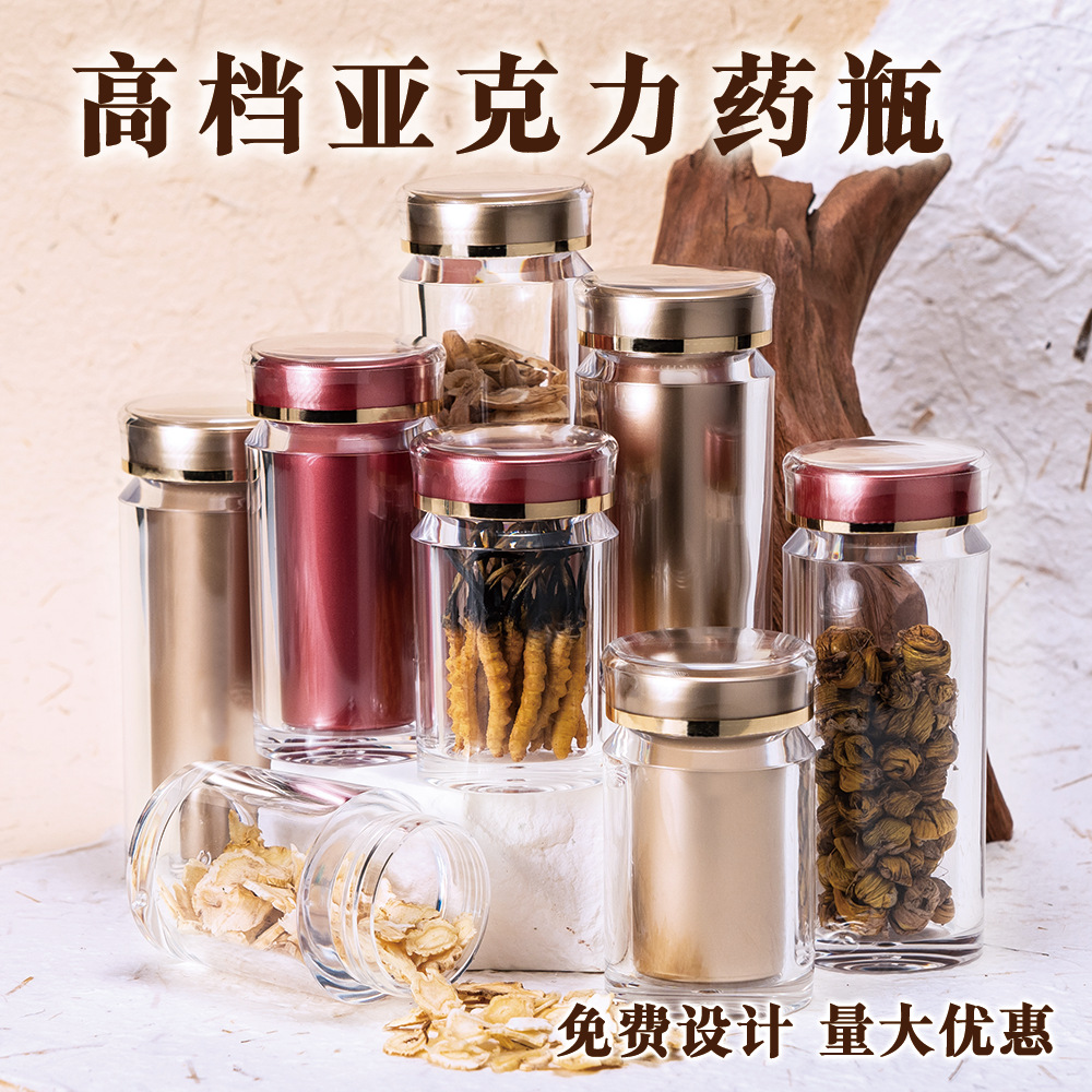 プラスチックボトルアルミキャップ包装瓶印字高級アクリル瓶漢方薬材保健食品薬品粉末密封缶